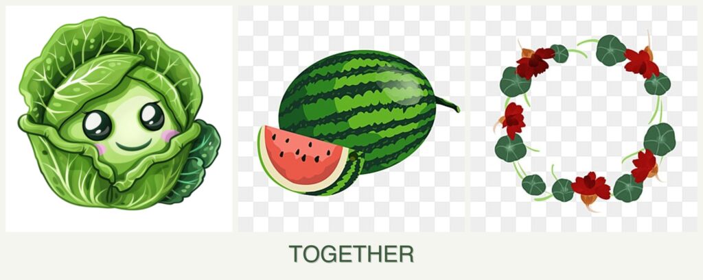- Different Watering Needs: Melons require more water than cabbage and nasturtiums.