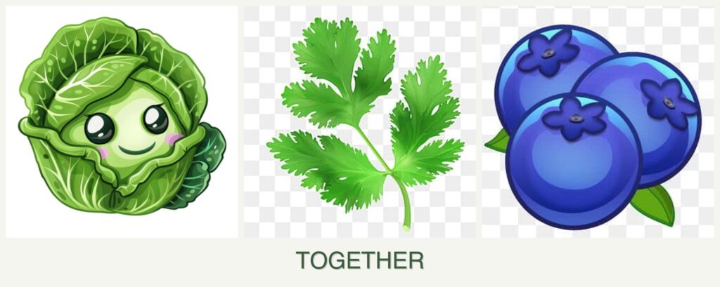 - Nutrient Needs: Cabbage and parsley have similar nutrient needs, but blueberries require different fertilization.