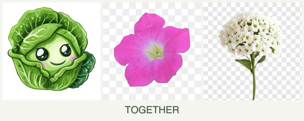 - Pest Control: Petunias are known to repel aphids, a common pest for cabbage, while alyssum attracts beneficial insects like hoverflies.