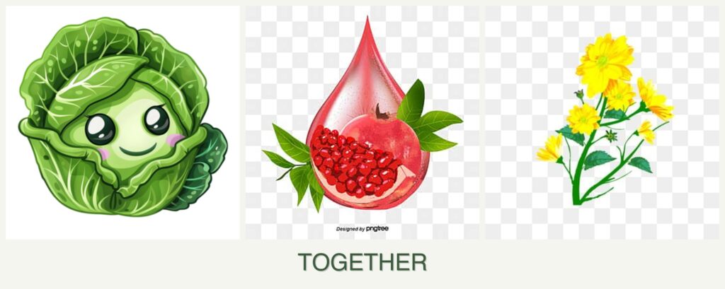 - Growth Requirements: Cabbage thrives in cooler temperatures, whereas pomegranates prefer warmer climates. Calendula is versatile and can adapt to various conditions, making it a good companion.