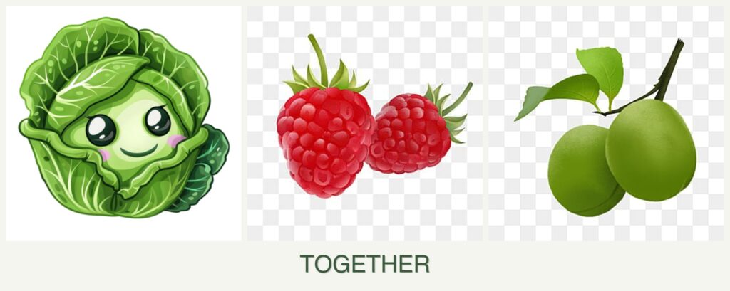 Planting cabbage, raspberries, and plums together can offer several benefits: