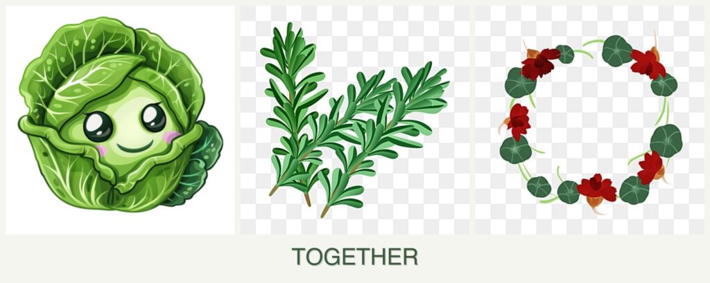 Competition for Resources: Cabbage’s high nutrient demand may compete with rosemary and nasturtiums. Ensure adequate soil fertility to mitigate this issue.