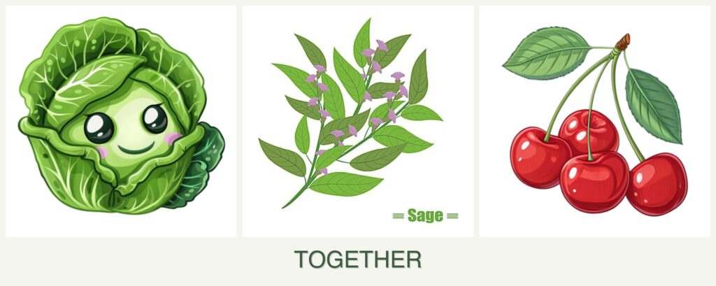 - Nutrient Needs: Cabbage and sage have compatible nutrient requirements, but cherries may require additional fertilization.