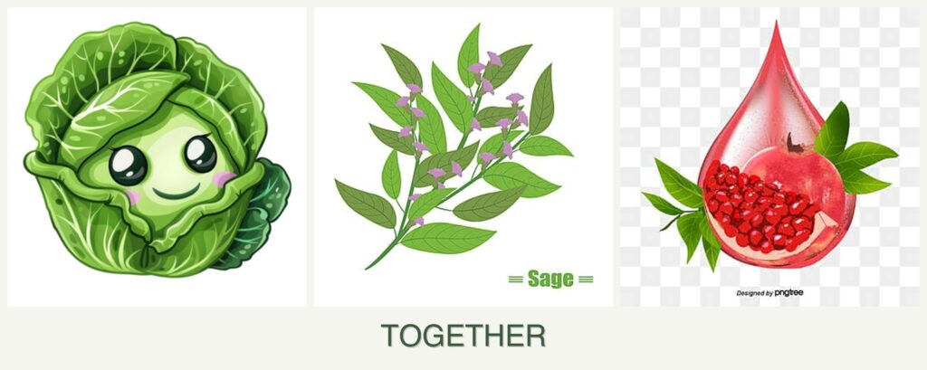 - Growth Requirements: Cabbage and sage share similar growth conditions, thriving in cooler temperatures and well-drained soil. However, pomegranates prefer a warmer climate and can tolerate drier conditions.