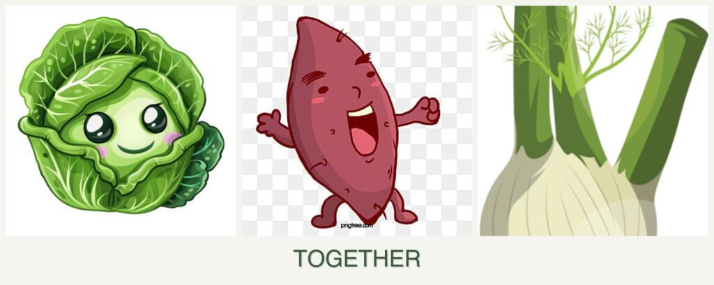 Growth Requirements: Cabbage requires cooler temperatures, while sweet potatoes thrive in warmth. Fennel prefers well-drained soil, which might not suit cabbage’s moisture needs.