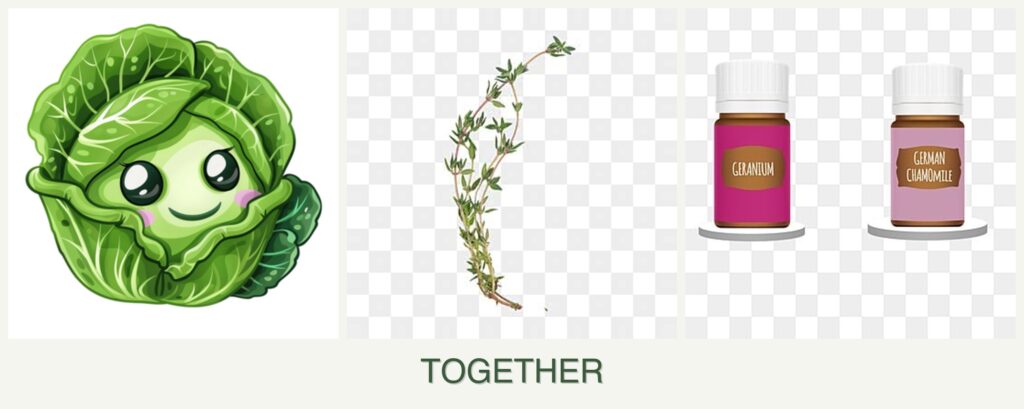 Pest Repellent Properties: Thyme and geraniums naturally deter pests that commonly affect cabbage, reducing the need for chemical pesticides.