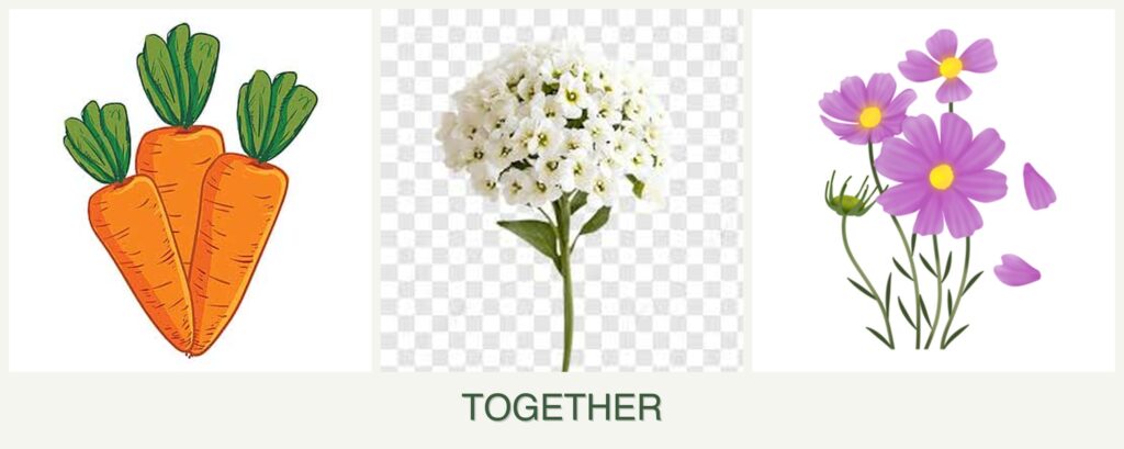 What should not be planted with carrots, alyssum, and cosmos?