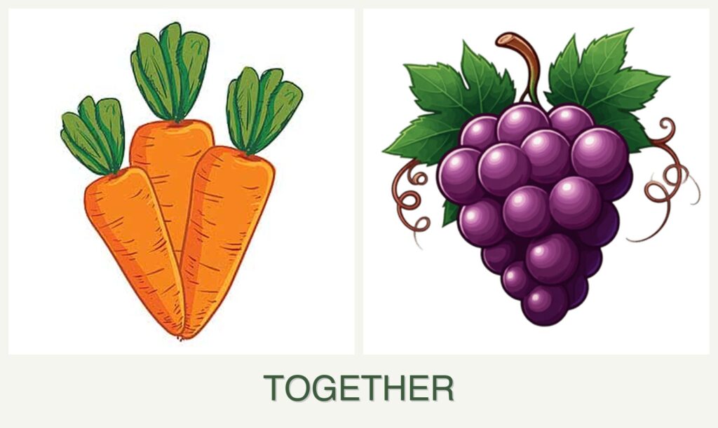 - Pollinator Attraction: Grapes attract pollinators, but this doesn’t directly benefit carrots, which are root crops.