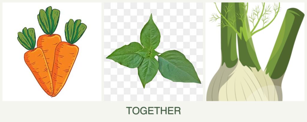 - Nutrient Needs and Spacing: Carrots and basil can be planted in close proximity, but fennel should be kept separate to avoid competition and allelopathic effects.