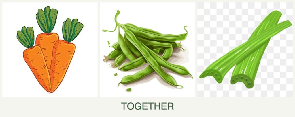 - Growth Requirements: Carrots and beans thrive in similar conditions, while celery needs slightly more moisture.