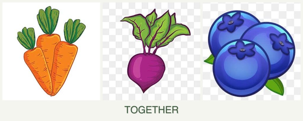 While carrots, beets, and blueberries are not ideal companions, carrots and beets can be planted together.