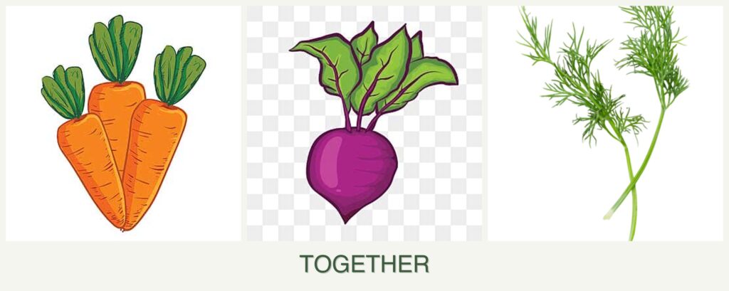 Carrots and beets should be 2-3 inches apart, with dill at least 12 inches away.