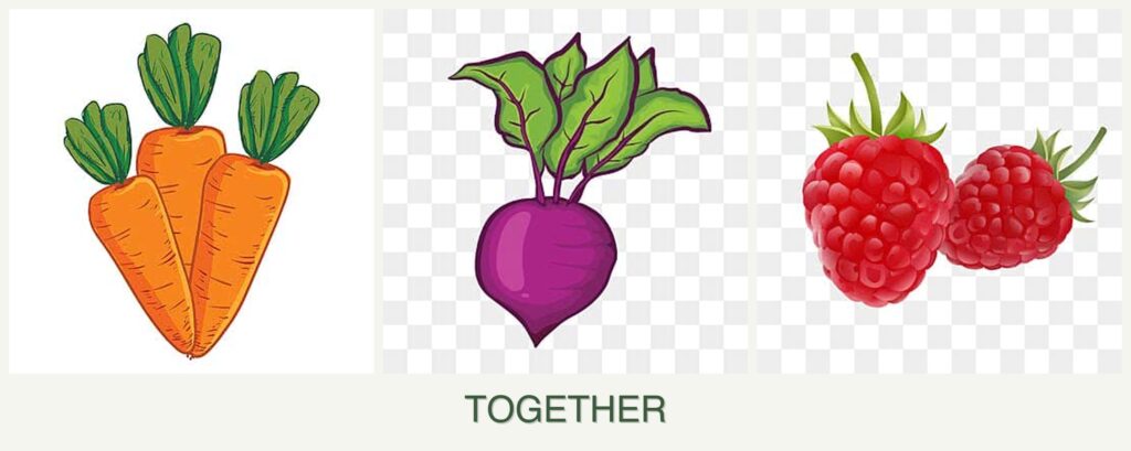 Growth Requirements: Carrots and beets are root vegetables with similar soil and sunlight needs, making them compatible companions. Raspberries, being a fruiting shrub, have different space and support needs but can coexist if given adequate space.