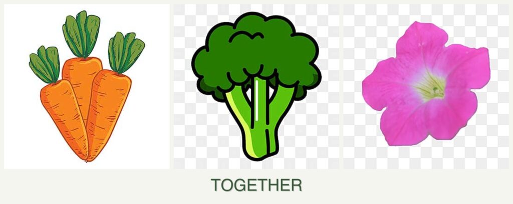 Can you plant carrots, broccoli and petunias together?