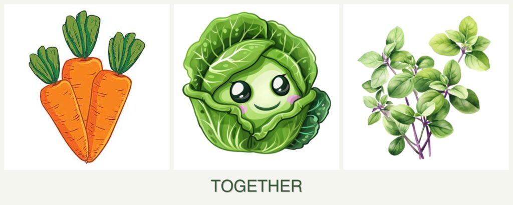 Planting carrots, cabbage, and oregano together offers several benefits:
