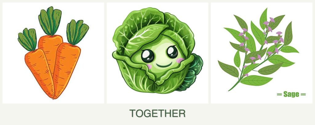 - Soil Health: Carrots’ root systems can help aerate the soil, improving drainage and nutrient uptake for cabbage and sage.