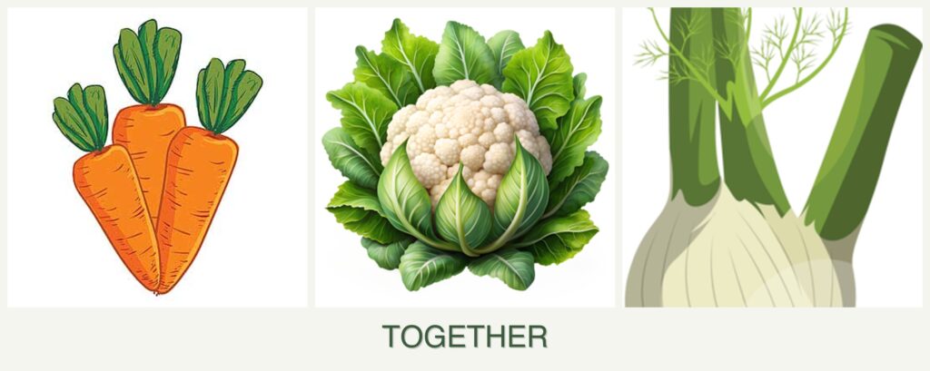 - Pest Control: Carrots and cauliflower can benefit from each other’s pest-repellent properties, but fennel does not contribute to pest control for these plants.