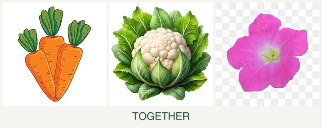 Can you plant carrots, cauliflower and petunias together?