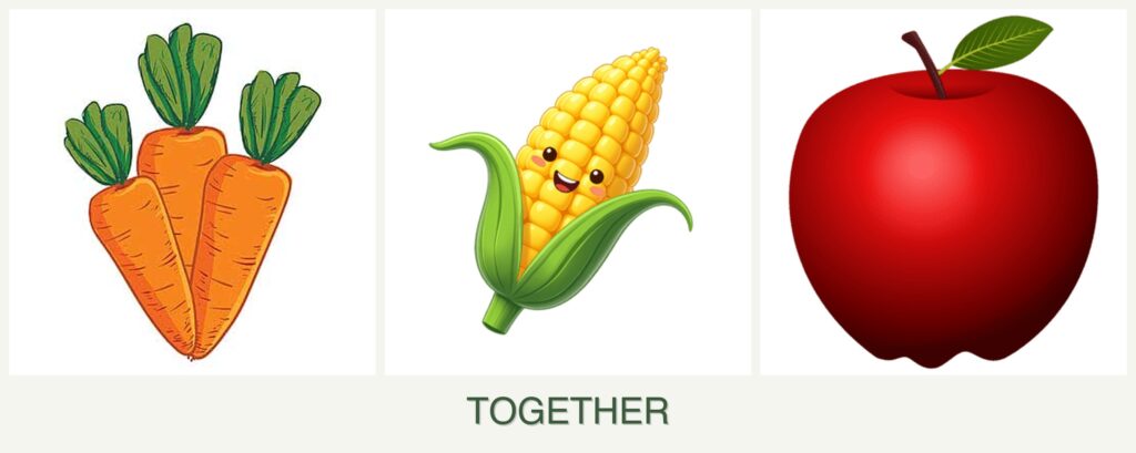 - Resource Competition: Corn’s high nutrient demand can deplete soil for carrots and apples.