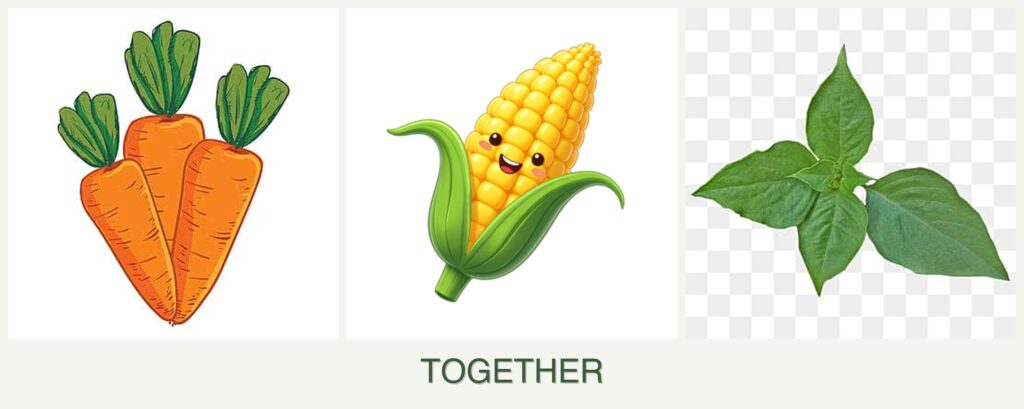 - Timing: Plant corn first, followed by carrots and basil once the corn is established.