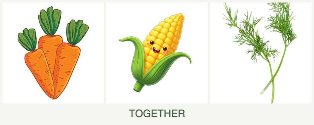 - Competition for Resources: Corn’s high nutrient demand can overshadow carrots and dill if not managed properly.