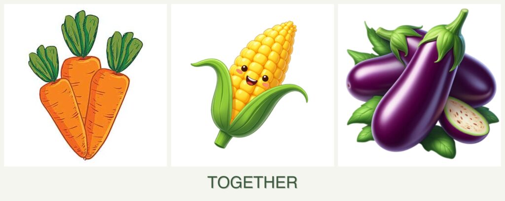 - Space Efficiency: Carrots utilize the underground space, while corn and eggplant occupy above-ground space, maximizing garden efficiency.