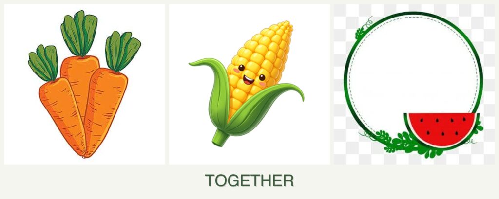 - Growth Requirements: Corn and watermelons both need full sun, while carrots can tolerate partial shade.