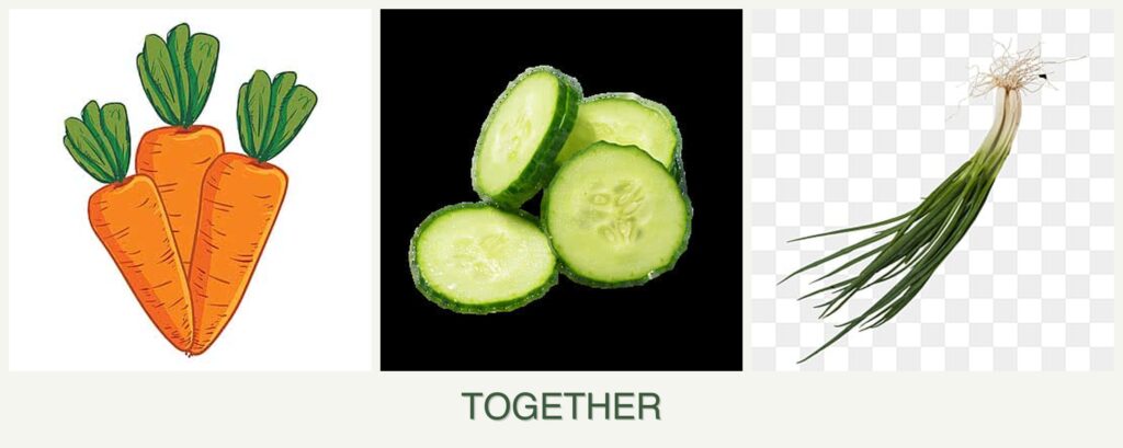 Planting these three together offers several advantages. Pest Control: Chives act as a natural pest repellent, particularly against aphids, which can harm carrots and cucumbers. Flavor Enhancement: Chives can enhance the flavor of nearby vegetables. Space Efficiency: The vertical growth of chives and the underground development of carrots allow cucumbers to spread without overcrowding. Soil Health: The varied root structures help maintain soil aeration and nutrient distribution. Pollinator Attraction: Cucumber flowers attract pollinators, benefiting all plants in the vicinity.