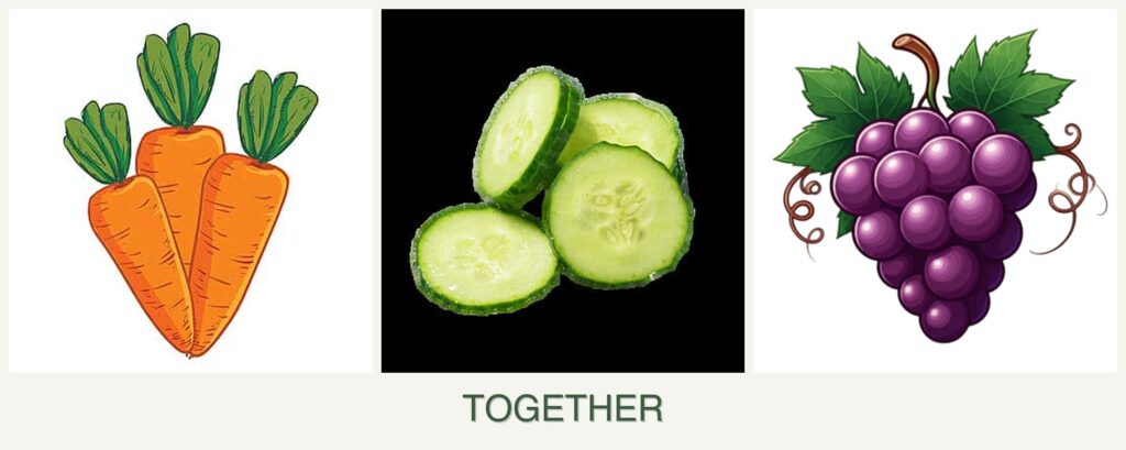 - Growth Requirements: Carrots thrive in cooler temperatures, while cucumbers and grapes prefer warmth.