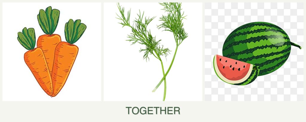 - Growth Requirements: Carrots and dill thrive in similar conditions, needing well-drained soil and full sun. Melons also need full sun but require more space and nutrients.
