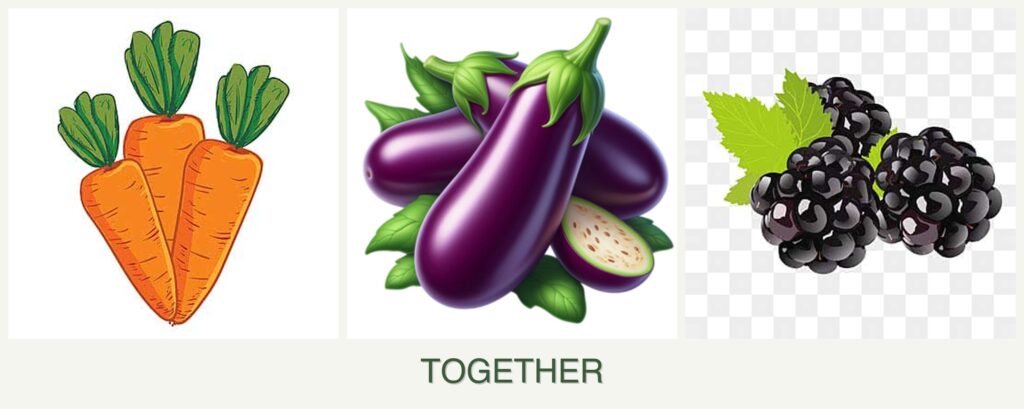- Growth Requirements: Carrots prefer cooler temperatures and partial shade, eggplants need full sun and warmth, and blackberries require plenty of space and sunlight.
