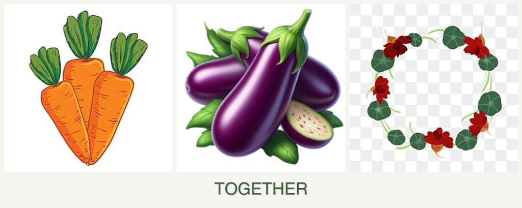 - Timing: Plant carrots and nasturtiums in early spring, while eggplants should be planted after the last frost.