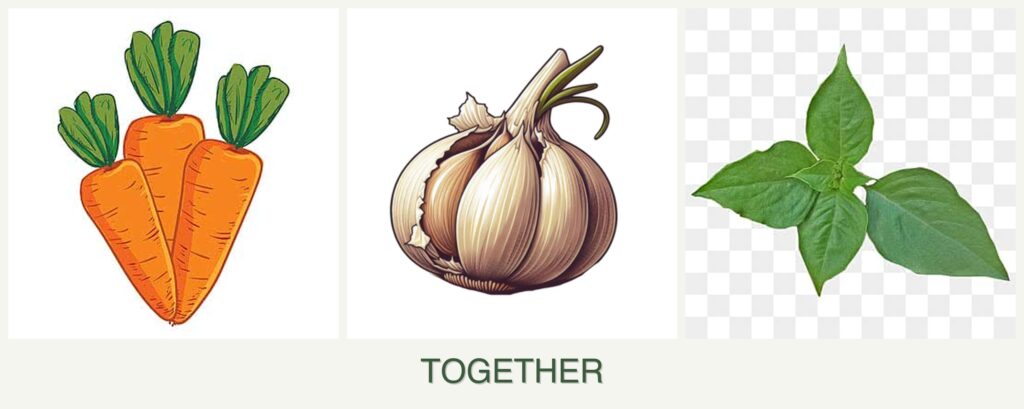 - Carrots benefit from garlic’s natural pest-repelling properties, particularly against carrot flies. Basil can enhance the flavor of carrots and garlic.
