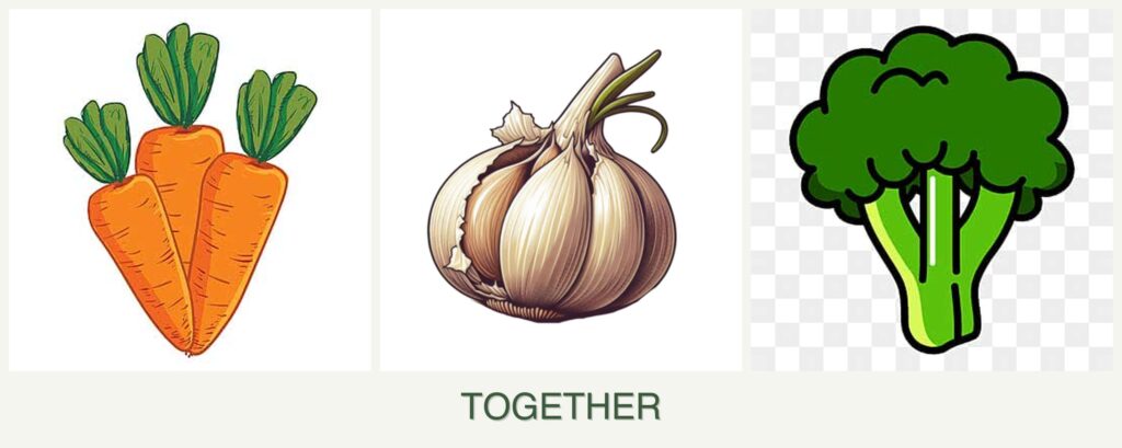 Soil Health Benefits: Garlic and carrots can help break up soil, improving aeration and drainage, which benefits broccoli’s growth.