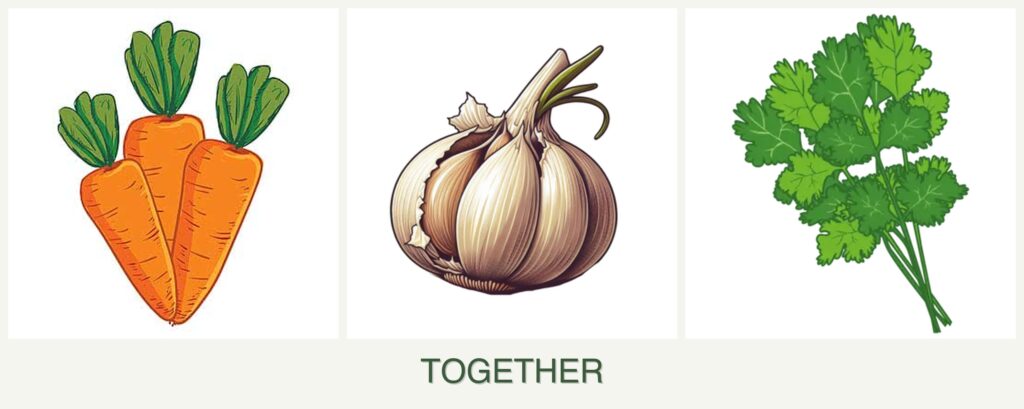 - Pest Control: Garlic acts as a natural pest repellent, protecting carrots and cilantro from harmful insects.