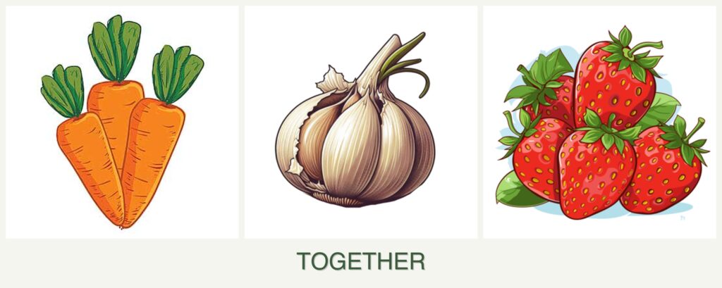 Growth Requirements: Carrots, garlic, and strawberries have different growth habits, which can work in your favor. Carrots grow underground, garlic has a vertical growth habit, and strawberries spread horizontally, allowing them to share space effectively without overcrowding.