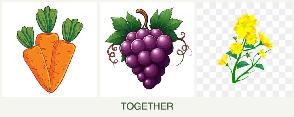 - Spacing: Grapes need ample space for their vines, while carrots and calendula can be planted closer together. Proper spacing ensures each plant receives adequate sunlight and nutrients.