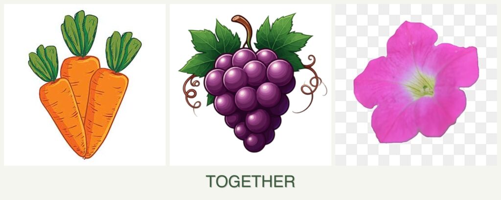 Can you plant carrots, grapes and petunias together?