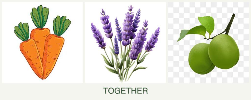 - Nutrient Needs: Carrots are light feeders, whereas plums demand more nutrients. Lavender requires minimal fertilization, making it a low-maintenance companion.