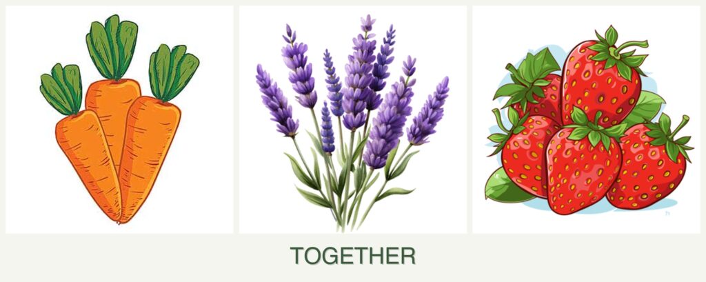 Planting carrots, lavender, and strawberries together can offer several benefits: