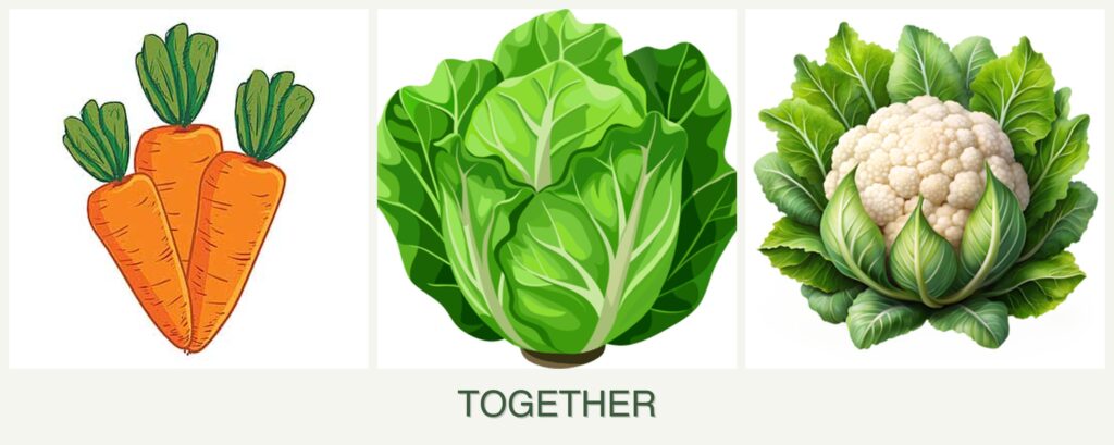 - Pest Control: Lettuce can act as a trap crop for pests that might otherwise target cauliflower, while the smell of carrots can deter some insects.