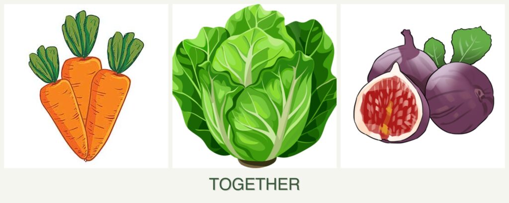 - Nutrient Needs: Carrots and lettuce have shallow roots and do not compete heavily for nutrients, whereas figs have deep roots that can draw nutrients away from nearby plants.
