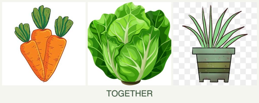 Lemongrass acts as a natural pest deterrent due to its citrusy aroma, repelling insects that might harm carrots and lettuce. Carrots and lettuce have minimal nutrient overlap, reducing competition for soil resources.