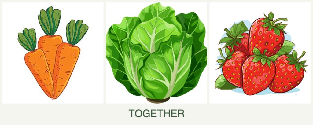 Planting carrots, lettuce, and strawberries together offers several advantages: