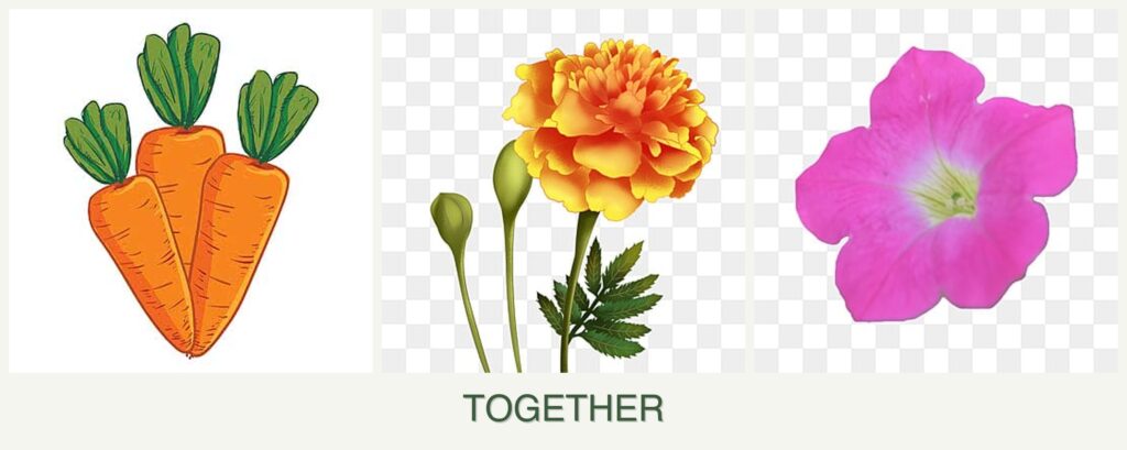 Planting carrots, marigolds, and petunias together offers numerous benefits: