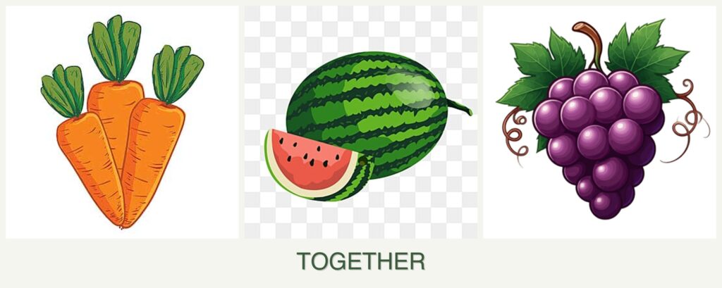 - Growth Requirements: Carrots thrive in cooler conditions, while melons and grapes need warmth and full sun.