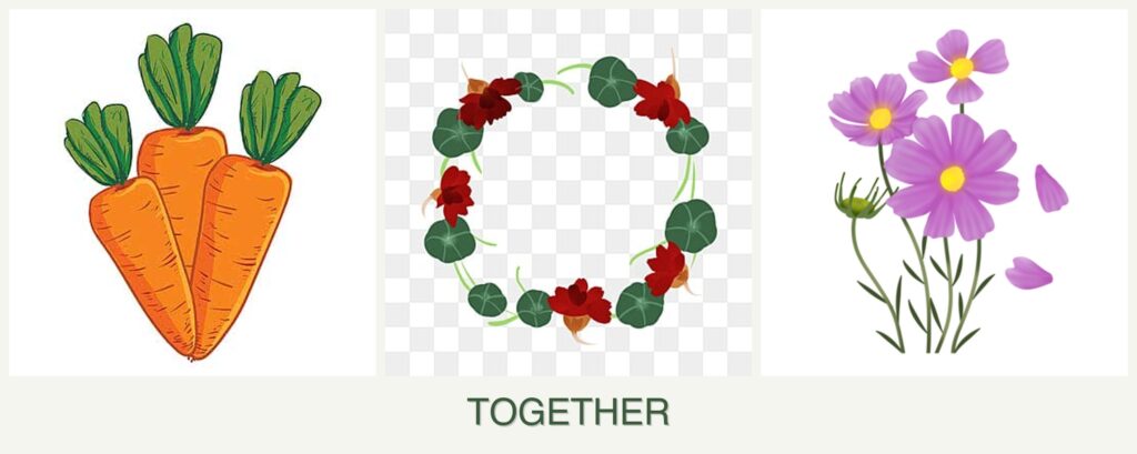 What should not be planted with carrots, nasturtiums, and cosmos?