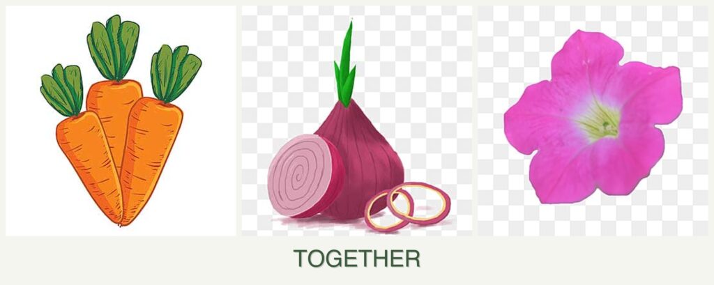 - Pest Control: Onions repel carrot flies, while petunias deter aphids, helping to protect carrots and onions.