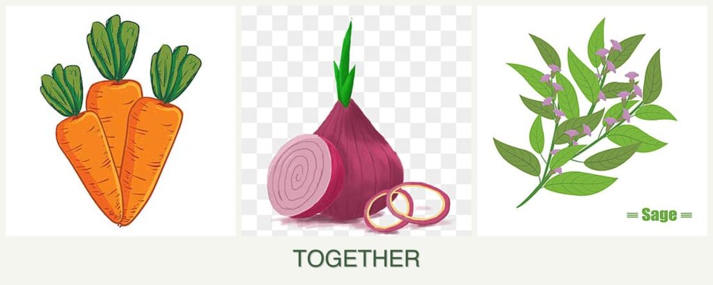 - Pest Control: Sage’s strong aroma deters pests like carrot flies, while onions repel aphids and other insects.