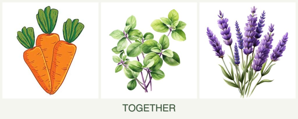 Can you plant carrots, oregano and lavender together?